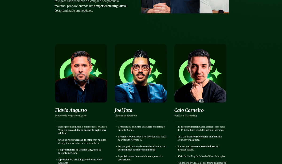 Fávio Augusto, Caio Carneiro e Joel Jota