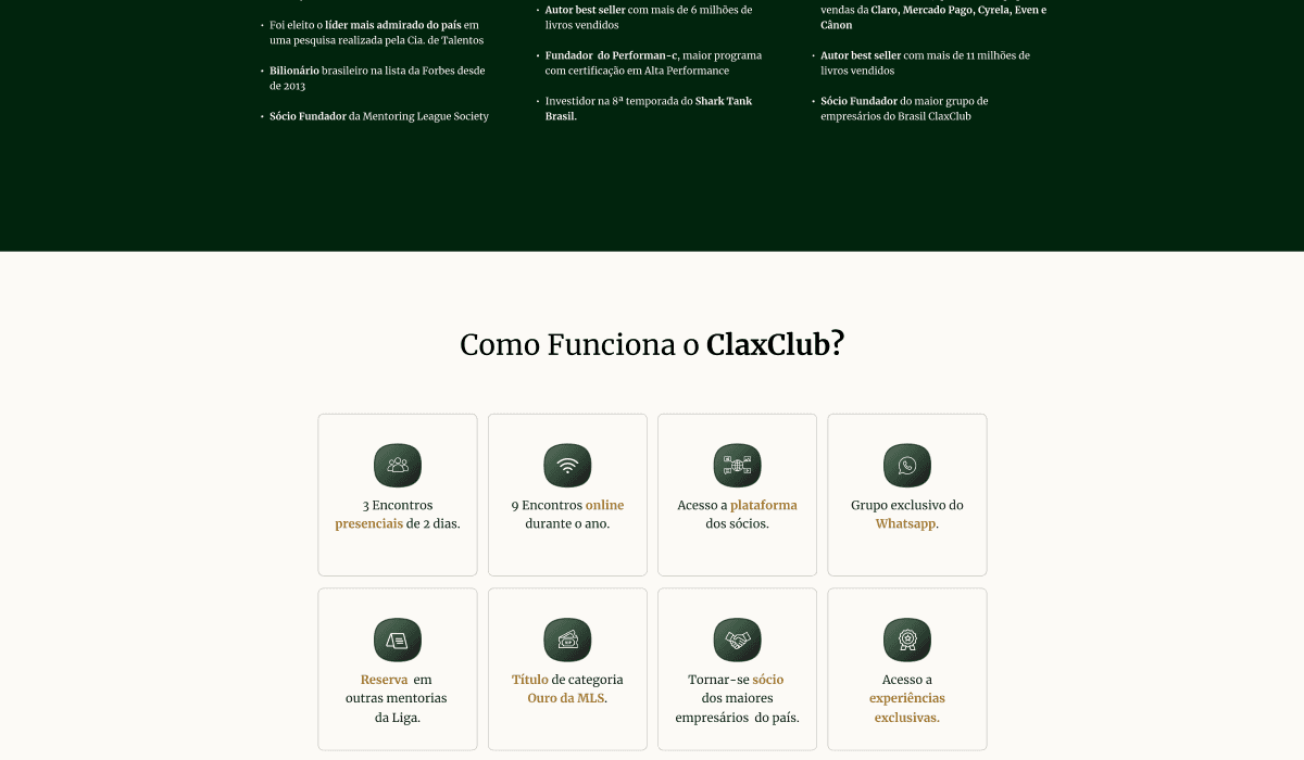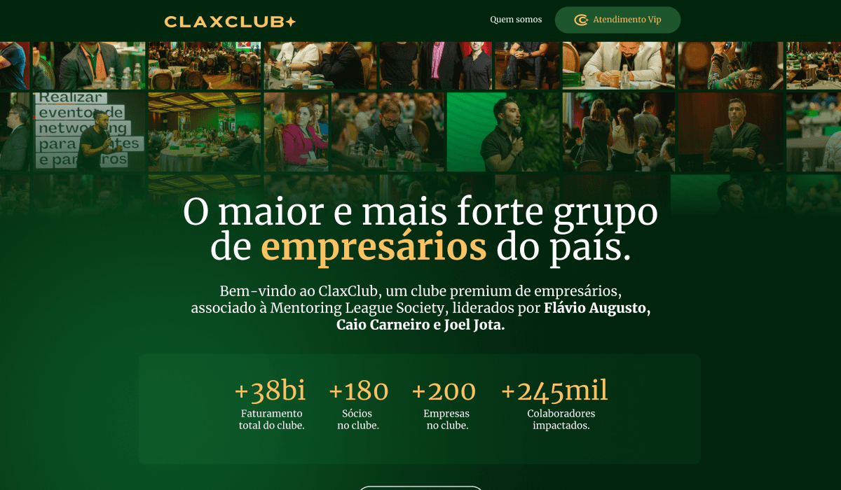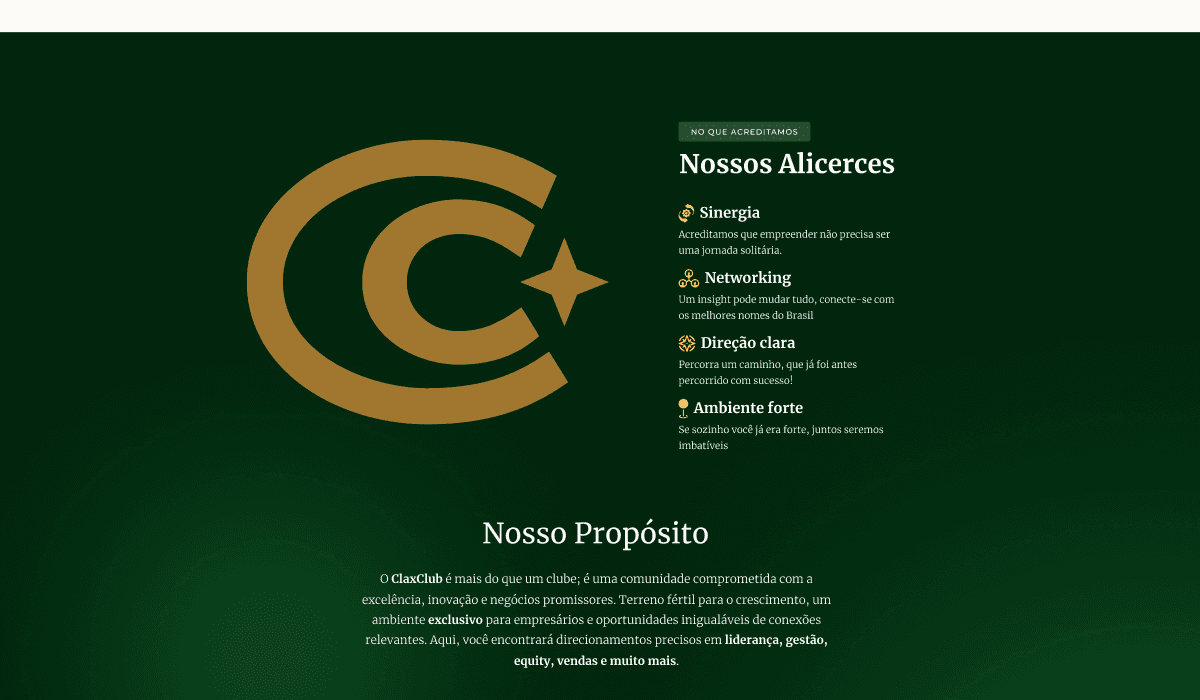 O ClaxClub é uma comunidade exclusiva que conecta empreendedores de alto desempenho, oferecendo networking, mentorias e eventos. O desafio era criar uma landing page que transmitisse sofisticação, exclusividade e autoridade, convertendo visitantes em novos membros do clube.