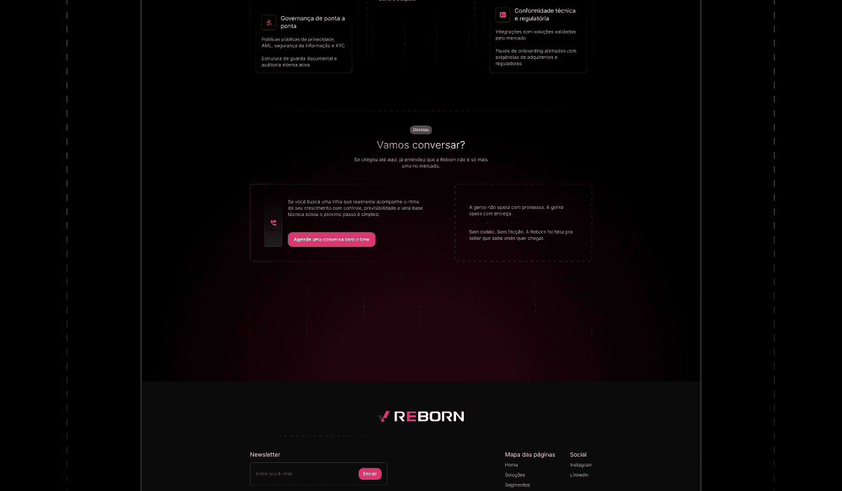 A Reborn precisava de uma página inicial que refletisse o valor de sua solução sem parecer complexa ou sobrecarregada. Era essencial equilibrar design, usabilidade e comunicação direta para captar a atenção e guiar o visitante até o momento de decisão.
